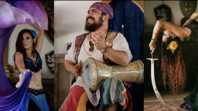 See the village mingle in dance.